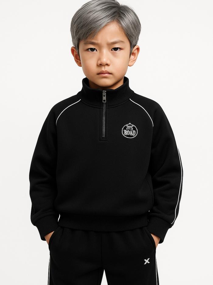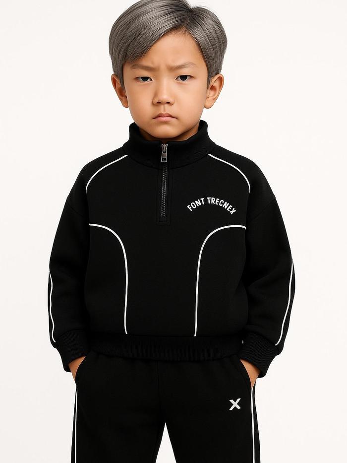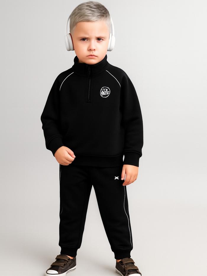Setelan Anak Laki-Laki Training Sporty Hitam – Baju & Celana Santai Kasual Stylish Katun - Hitam, S 1-2 Tahun