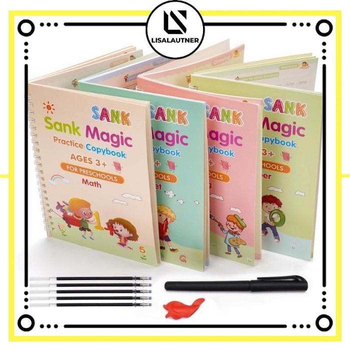 4Pcs Sank Magic Book Buku Belajar Menulis Anak Buku Angka Huruf Buku Edukasi Anak Tk Sd Paud
