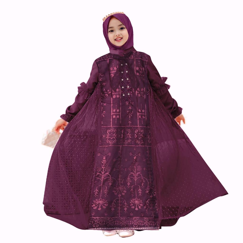 Baju gamis anak burgundy Angel 2-13thn || baju gamis pesta anak perempuan , baju gamis anak mahogany
