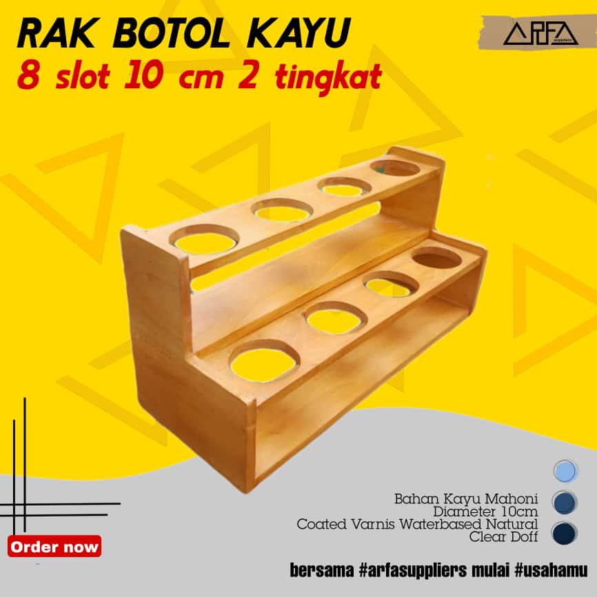 Rak Botol Kayu 8 10Cm 2 Tingkat - Rak Kayu Bumbu Botol Serbaguna