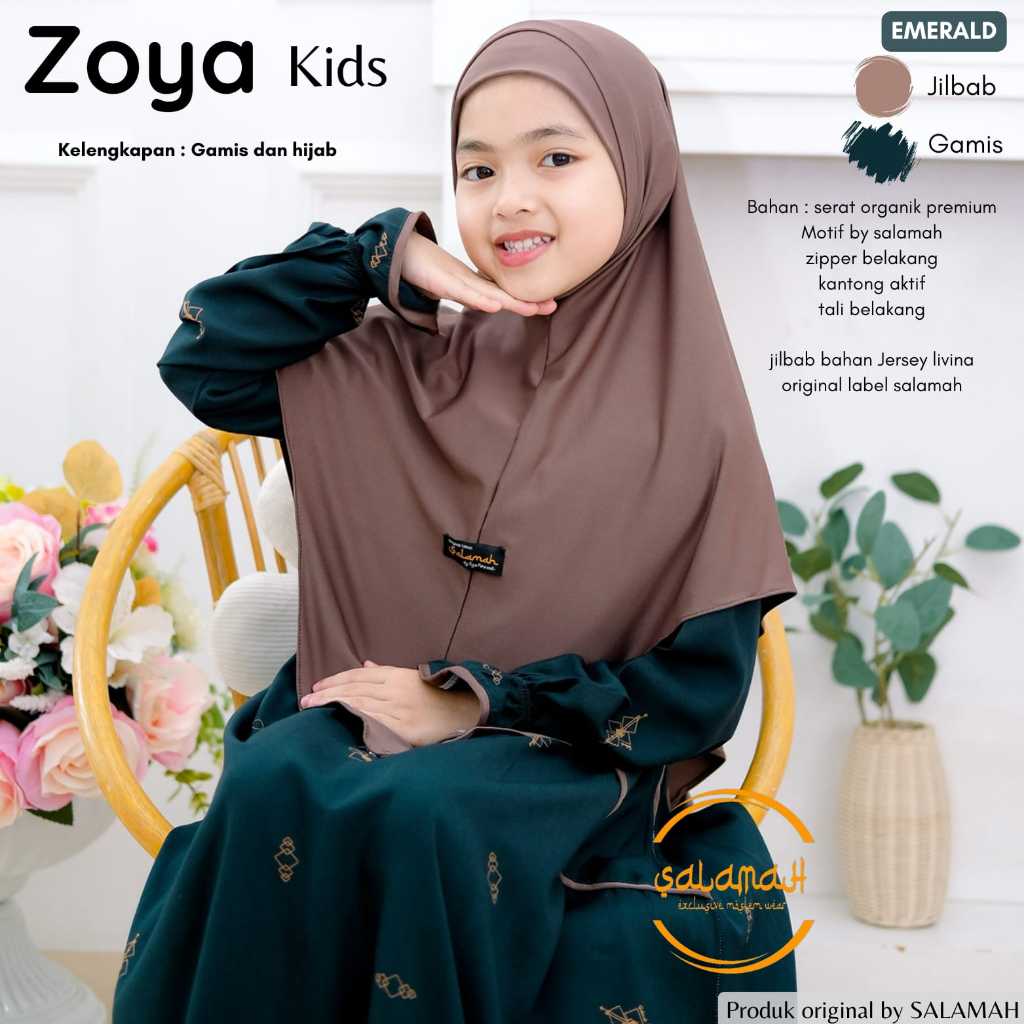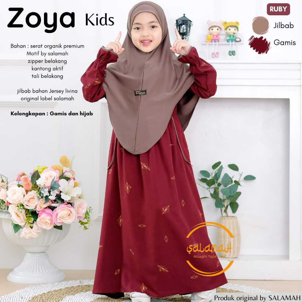Gamis anak ZOYA KIDS Plus Jilbab| Motif by Salamah | usia 2 3 4 5 6 7 8 9 11 -15 tahun | by Salamah
