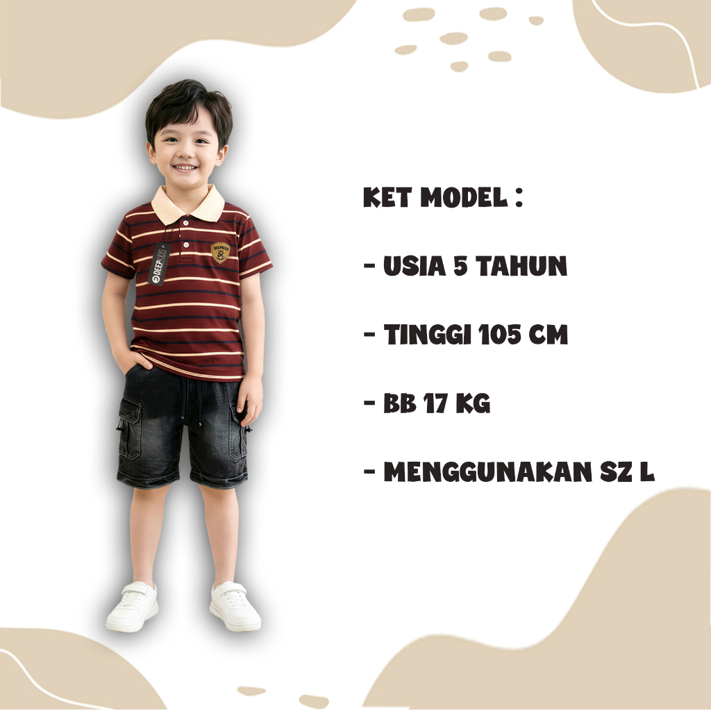 Deepkids Baju Kaos Kerah Salur Anak Laki Laki Bahan Cotton Cvc 24S Usia 1 2 3 4 5 6 7 8 9 10 11 12 Tahun | Kaos Stevada