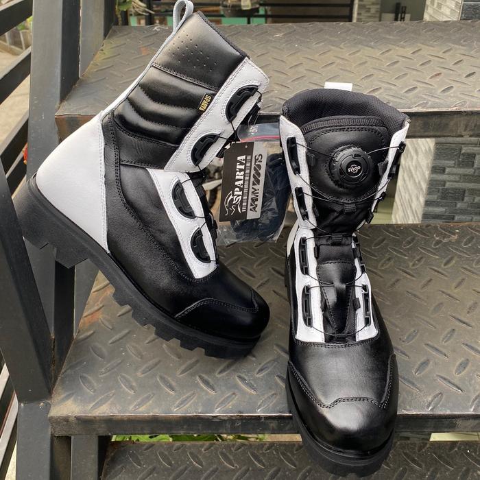 SPARTA NEW SEPATU PDL PROVOST KULIT SAPI ASLI SOLE KARET RADIAL HITAM PUTIH BOOTS SHOES - HITAM PROVOS POLRI, 38