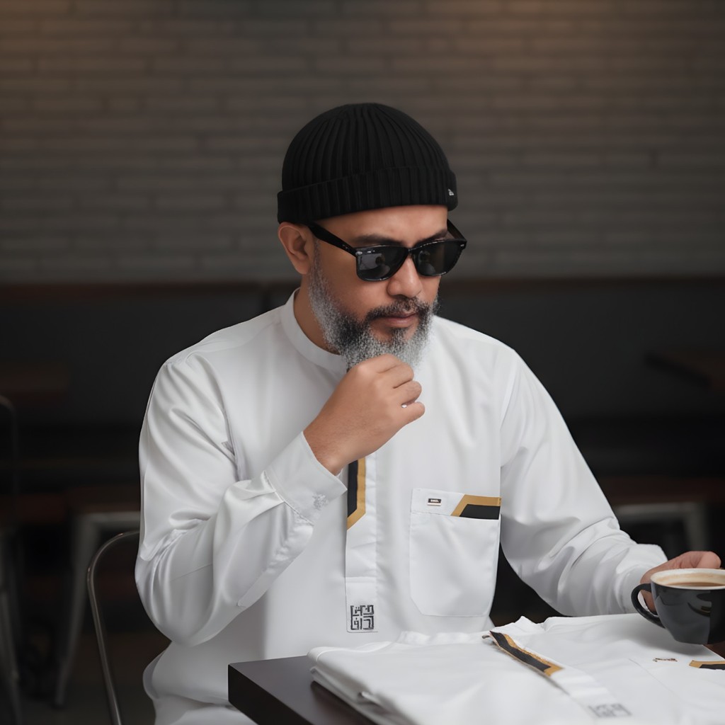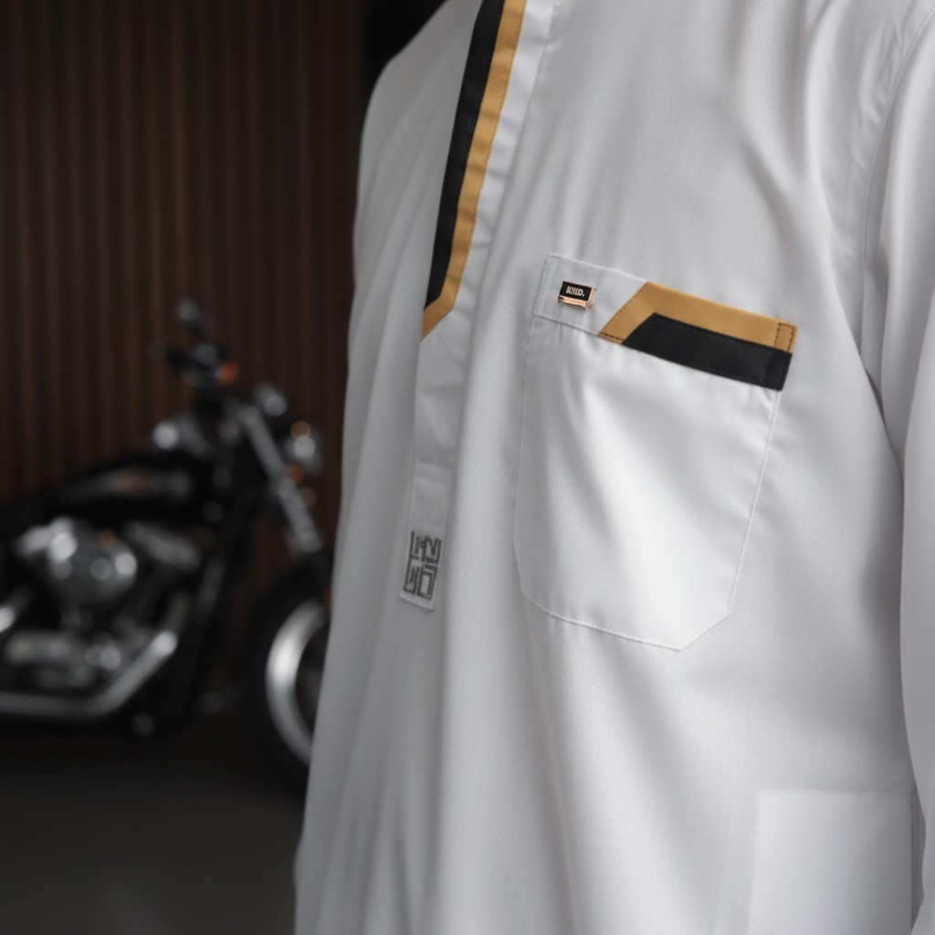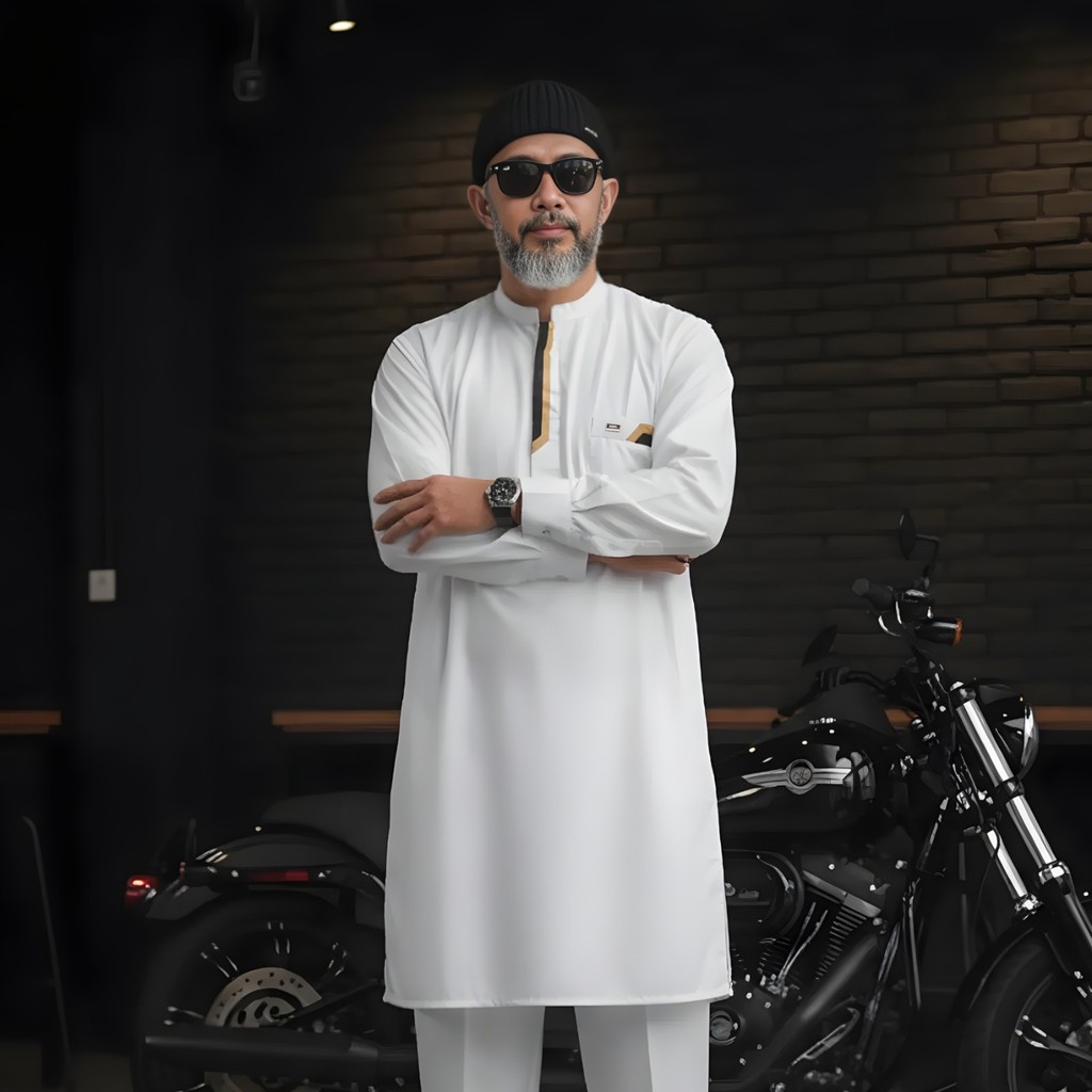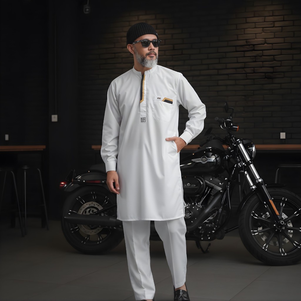 Khaleed Apparel - Kurta Koko Setelan Lengan Panjang Putih Gamis Pakistan