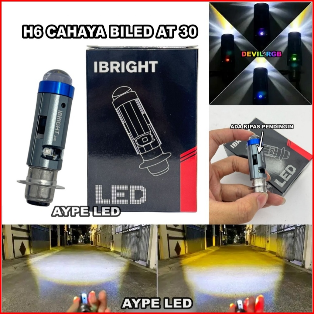 Lampu Utama H6 Ibright At 30 Cahaya Biled Motor Lampu Depan 2 Kaki H6 High Lo Kipas Pendingin