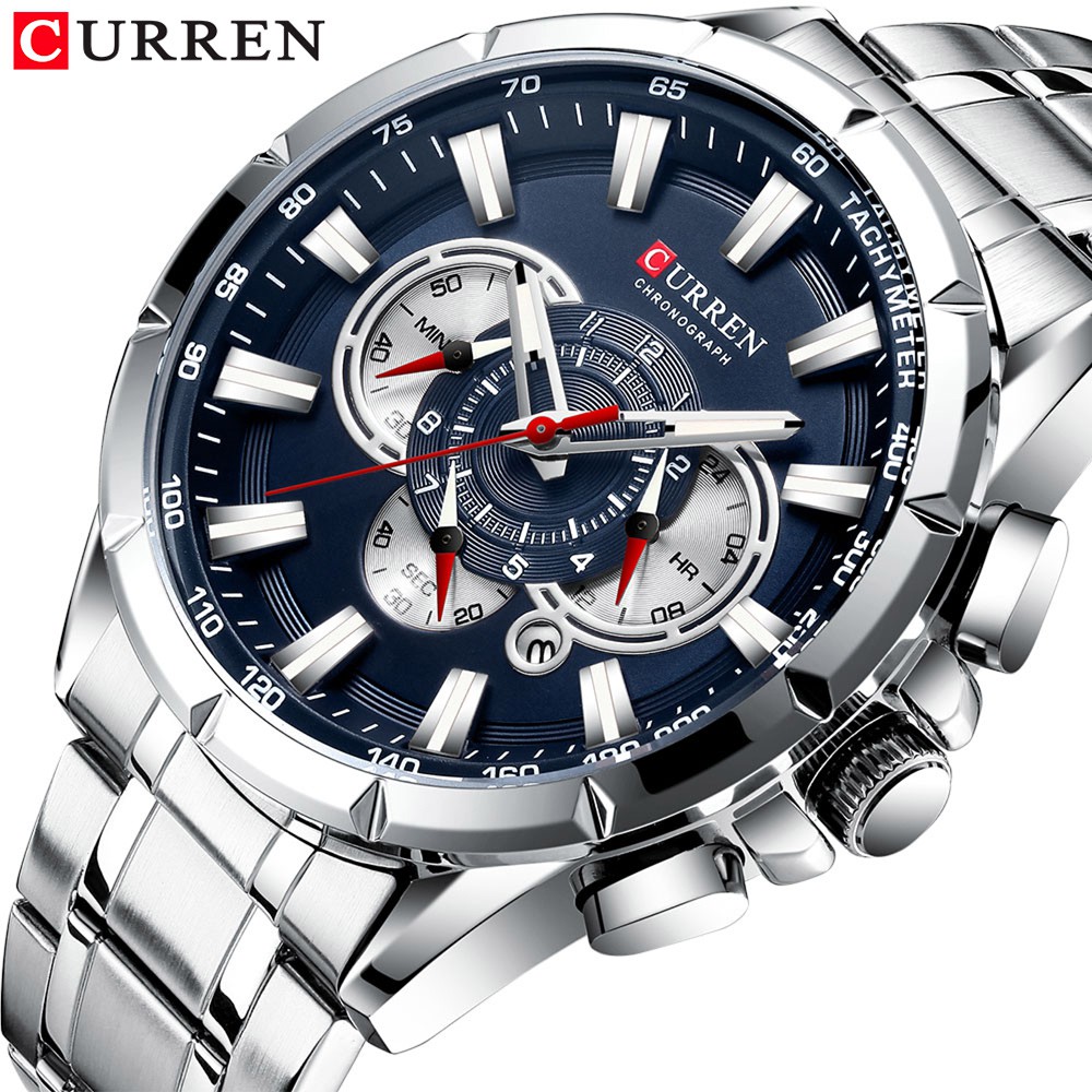 Curren 8363 Jam Tangan Pria Analog Stainless Steel Chronograph Aktif Luminous Hand Currenos