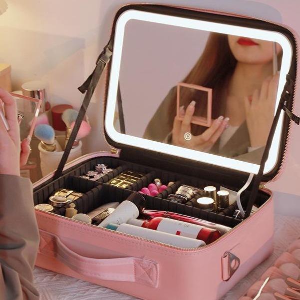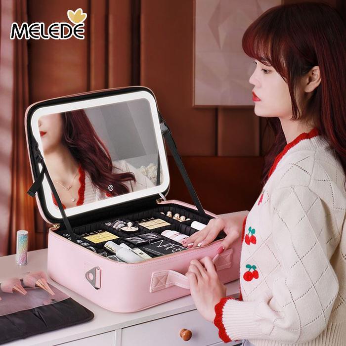 Melede Tas Makeup Lampu / Led Makeupartist Bag Mua Beauty Case Makeup Bag Dengan Cermin Led, Travel Makeup Case For Wome