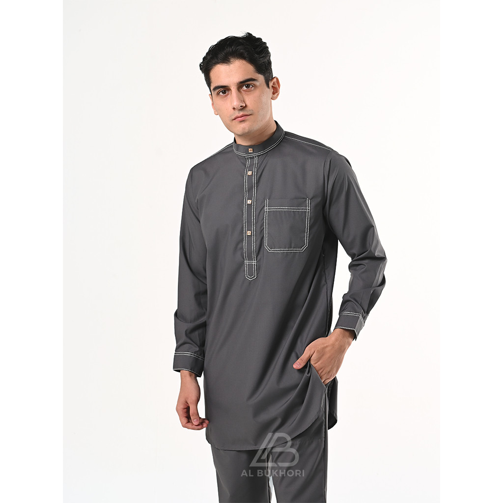Al Bukhori - TENCEL Koko Jubah Muslim Kurta Set Pakistan Pria Dewasa Lengan Panjang - Kurta Kemal