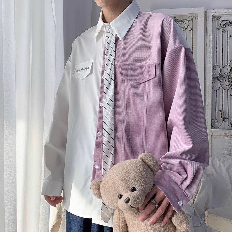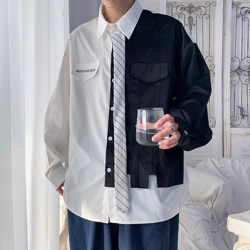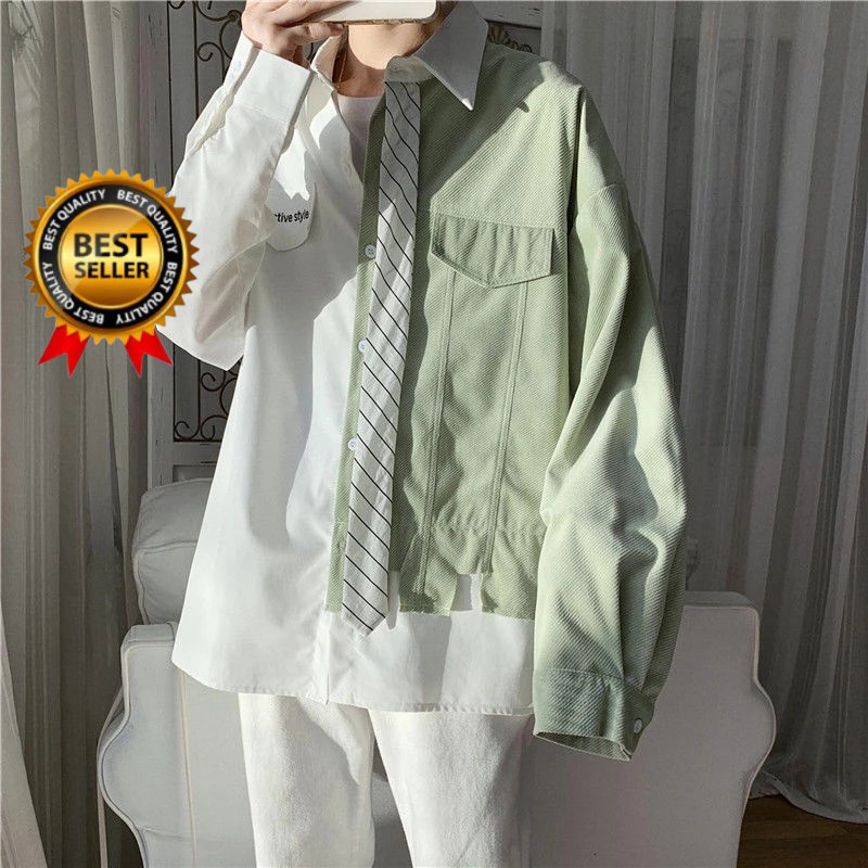 Kemeja Langan Panjang Atasan Korea Pria Lengan Panjang Cowok Fashion Pria Oversize Pria Palsu Dua