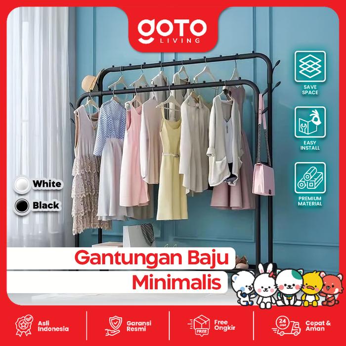 Goto Spiko Rak Besi Gantungan Stand Hanger Baju Pakaian - Hitam Single