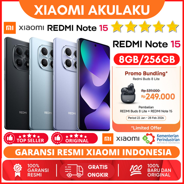 (Xiaomi Sale) Xiaomi Redmi Note 15 (8/128 GB) (8/256 GB) | Baterai besar 6000mAh | Layar AMOLED FHD+ 6,77" | NFC | IP64