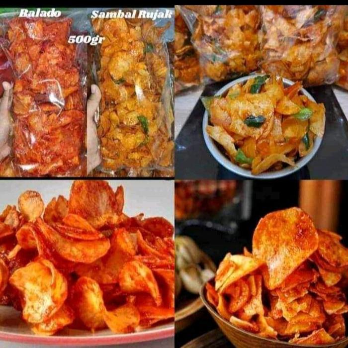 1Kg Keripik Singkong Sambal Balado Rujak Viral Pedas Manis Daun Jeruk Cabe Asli Makanan Ringan Snack Cassava Chips Cemil