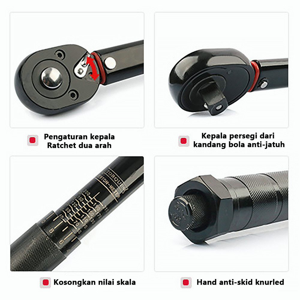 1/4 1/2 Torsi Preset Torsi Kunci Pas Drive Alat 5-210 Nm Positif Negatif Dua Arah Penyesuaian Kunci Pas Perba