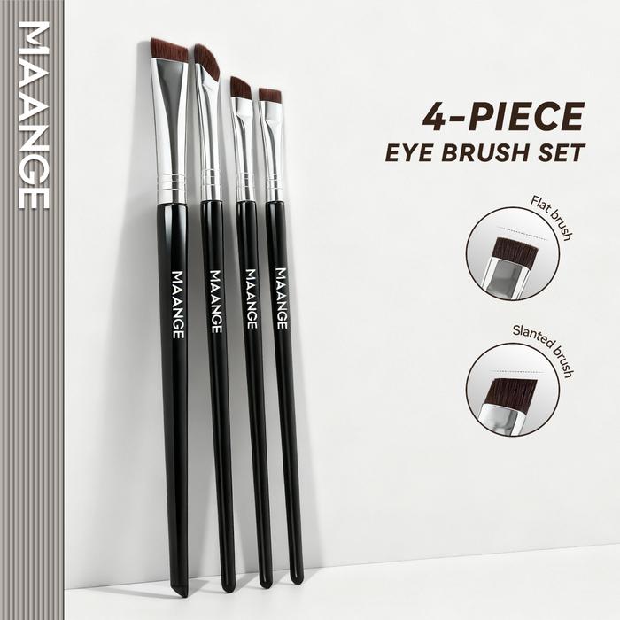 Maange 4 Pcs Set Brush Makeup Angled Eyeliner & Eyebrow Brushes - Sickle Shape Precision 52047 Kuas Hitam Mata & Alis Ey