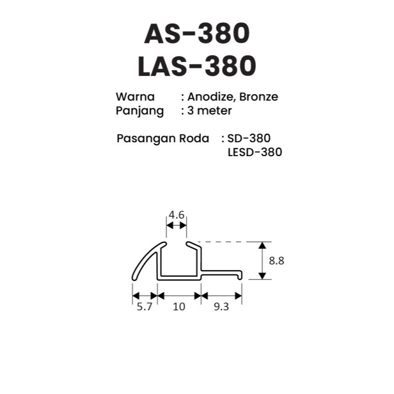 Huben Rel Aluminium 3 Meter As - 75 | Rel Sliding Lemari Aluminium Huben