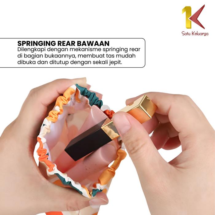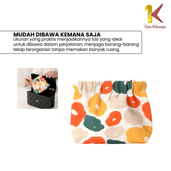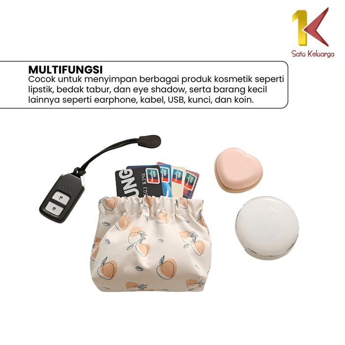 Sk T57 Tas Pouch Mini Travel Motif Elegant Penyimpanan Kosmetik Serbaguna - Cream - Apricot
