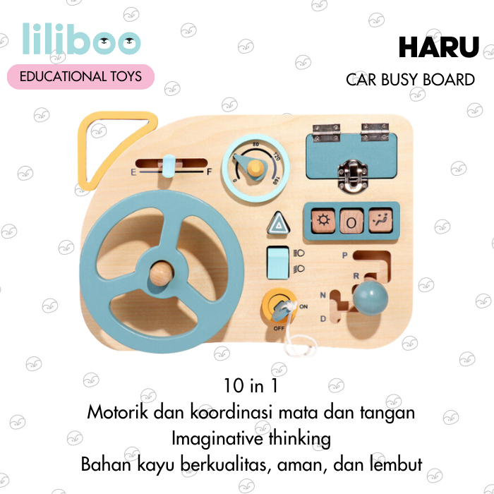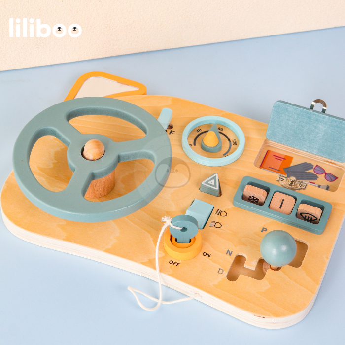 LILIBOO HARU Mainan Edukasi Anak Montessori Kayu Car Busy Board Pretend Play Driving Steering Wheel