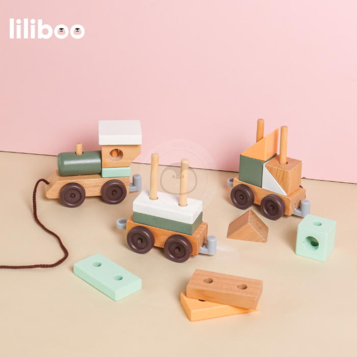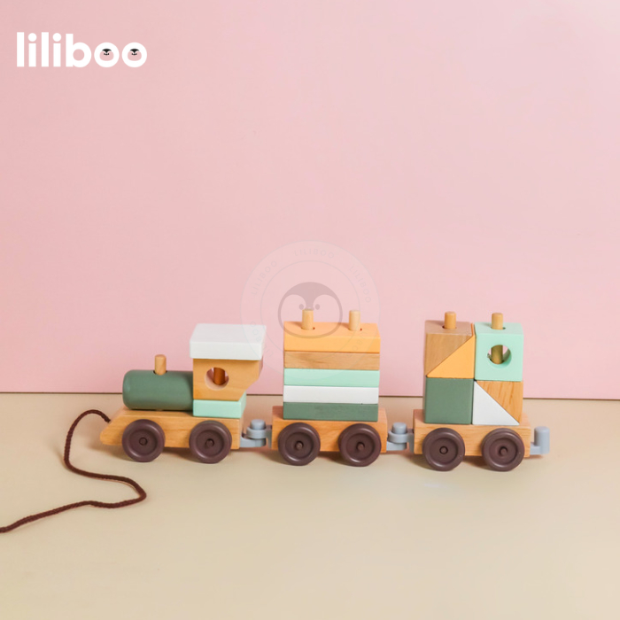 LILIBOO RURI Mainan Edukasi Anak Montessori Kayu Kereta Balok Susun