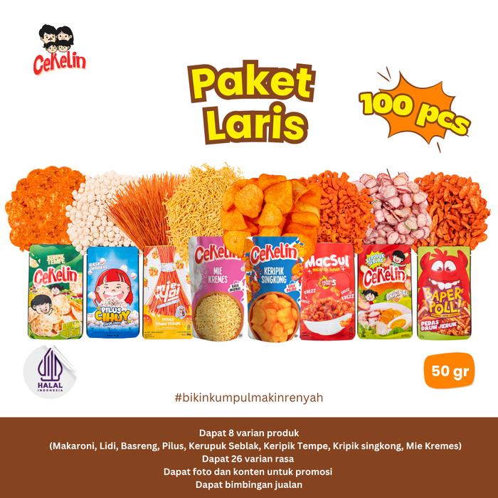 Cekelin Cemilan Paket Laris 100Pcs Makaroni Mie Lidi Basreng Pilus Kerupuk Seblak Keripik Tempe Keripik Singkong Mie Kre