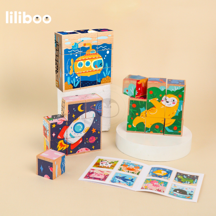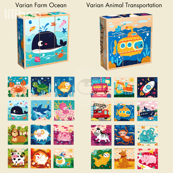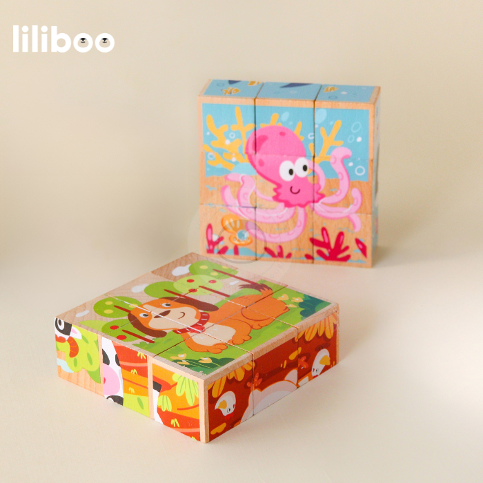 LILIBOO SUKI Mainan Edukasi Anak Montessori Kayu Puzzle Gambar 6 Sisi