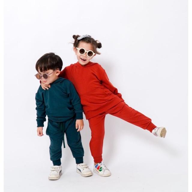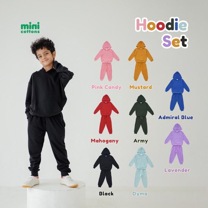 Mini Cottons Hoodie Jogger Set Anak Pakaian Fashion Celana - Black, 1-2 Tahun