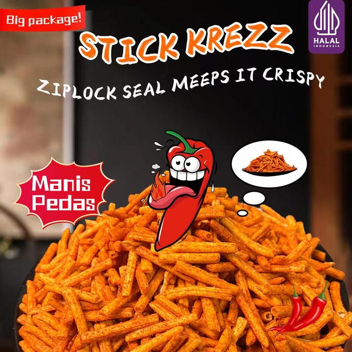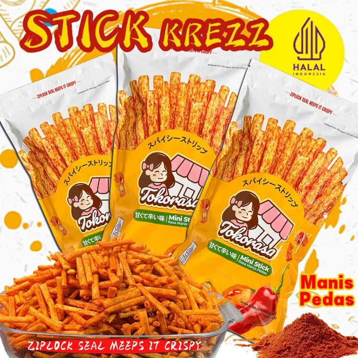 Pack Besar Cemilan Baru , Halal , Tokorasa Stik Kriuk Rasa Manis Pedas , Cemilan Viral ,Cemilan Kekinian , Renyah Dan
