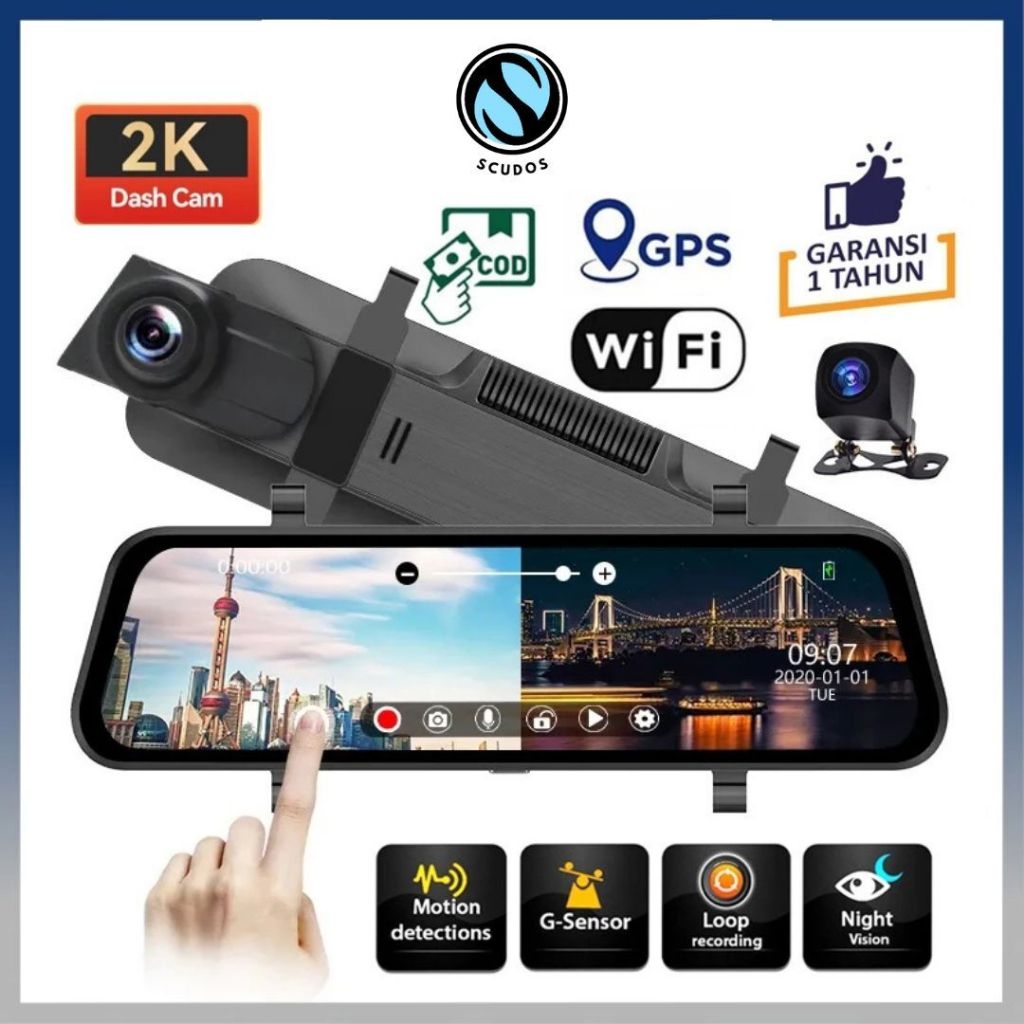 SCUDOS Dashcam Mobil 2K HD 10 Inch Layar Sentuh IPS Night Vision Dual Lens Perekaman Loop 24 jam