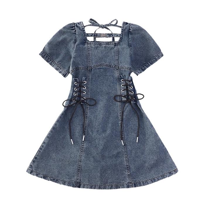Princess Kesli 3-13 Tahun Gaun Denim Anak Perempuan Musim Panas 2025 Rok Denim Anak-Anak Baru Lengan Pendek Tipis Dre