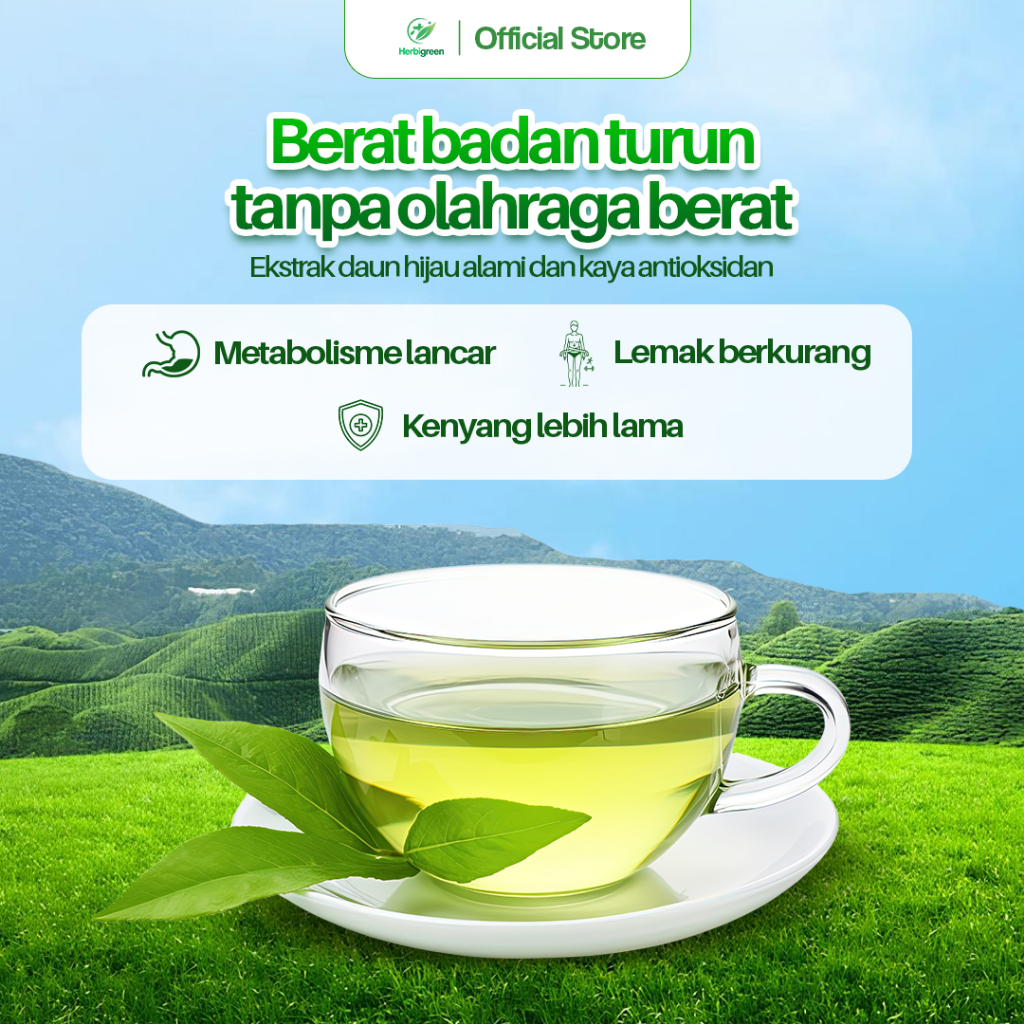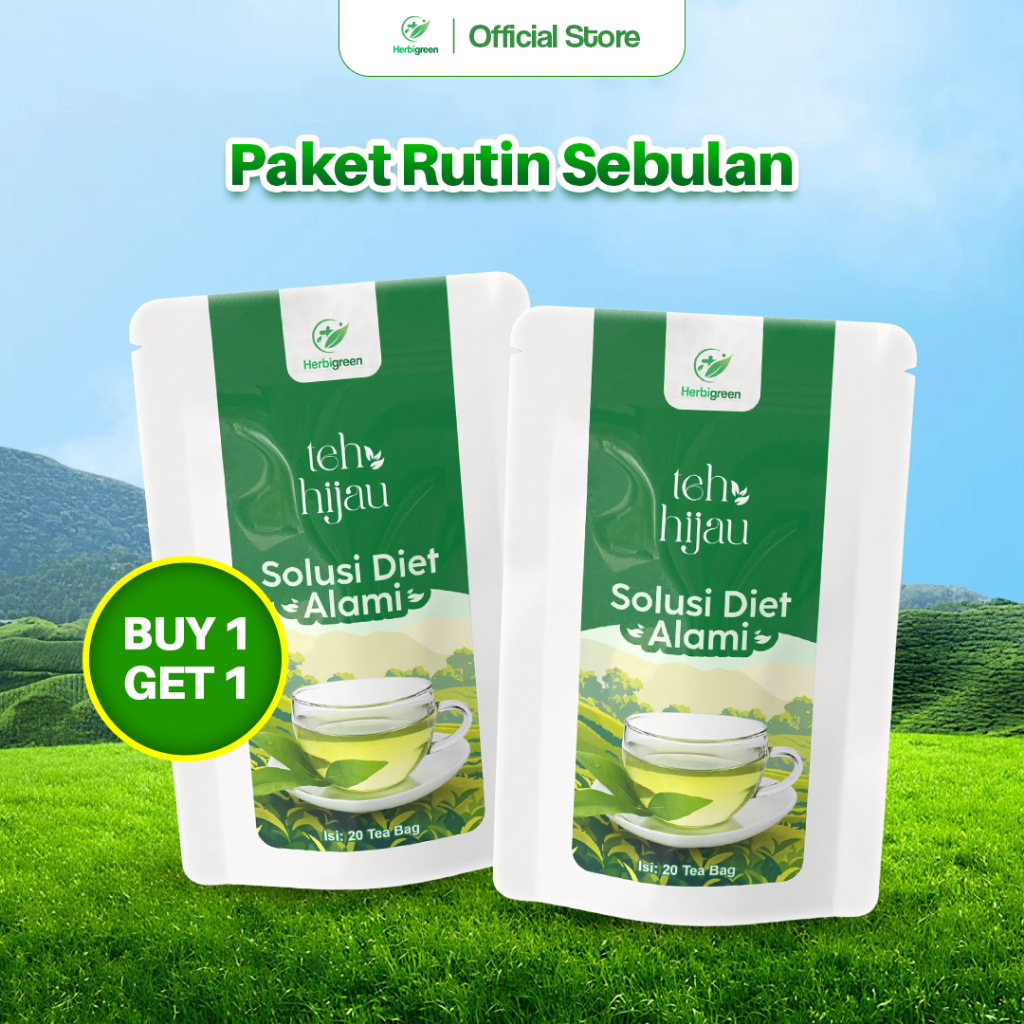 Paket Bundling Teh Hijau 2 Pcs Herbgreen Teh Hijau Celup Alami Minuman Teh Hijau Original Isi 20 Tea Bag per Pouch Teh Herbal Seduh Harian
