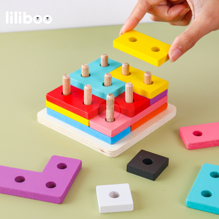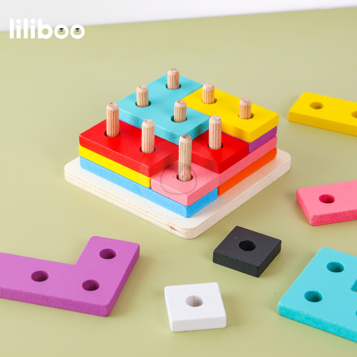 LILIBOO YUJI Mainan Edukasi Anak Montessori Kayu Stacking Tetris Logic Block Puzzle