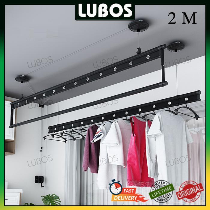 Lubos 2M Jemuran Baju Gantung Lifting Atap Plafon Langit-Langit Engkol Katrol Manual Aluminium Alloy Ceiling Clothes Lau