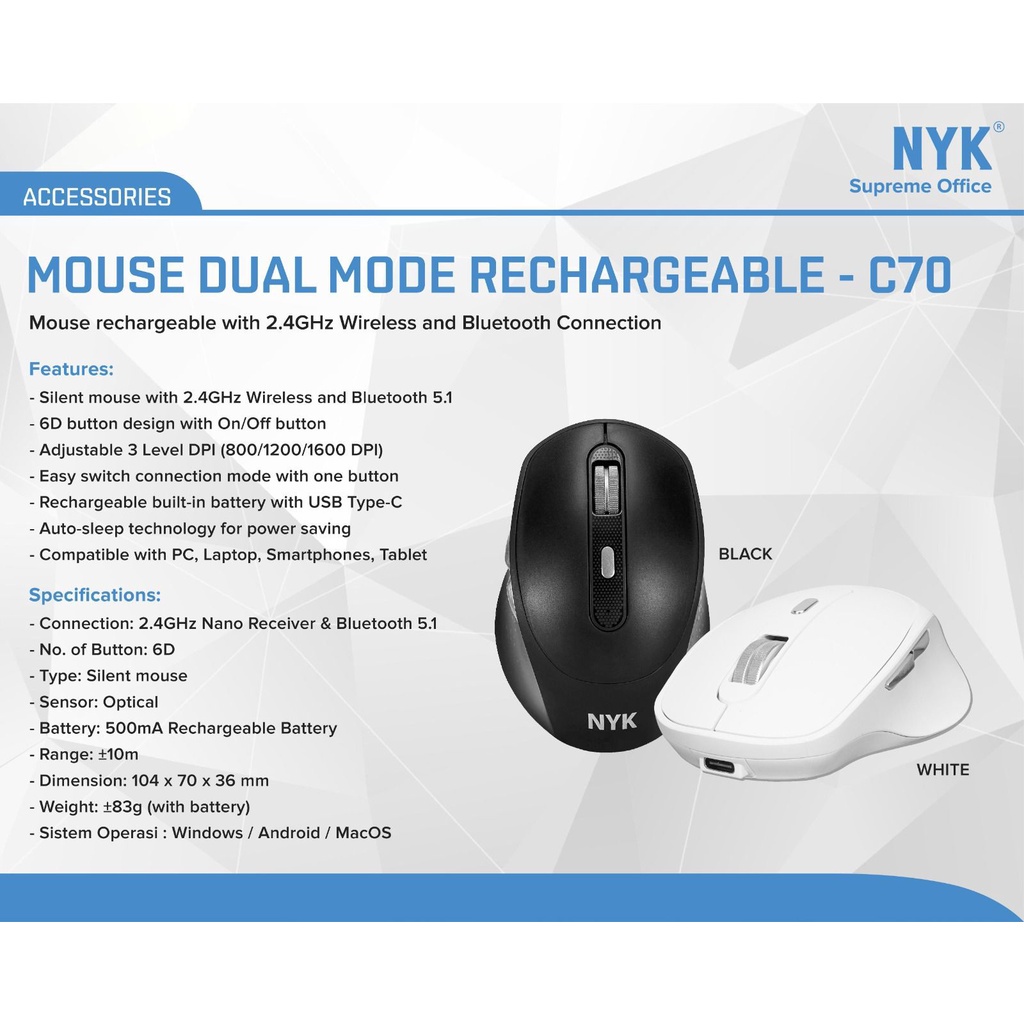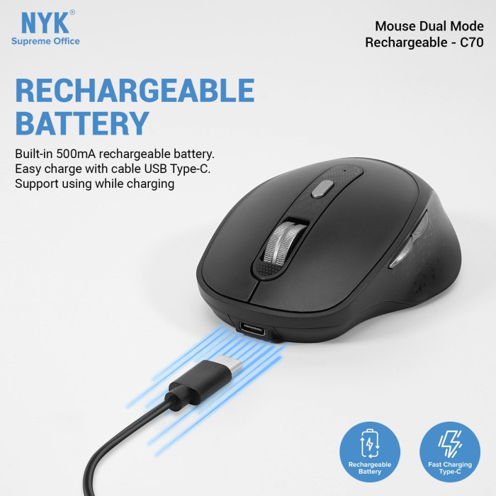 NYK Mouse C70 Dual Mode Wireless Bluetooth Rechargeable
