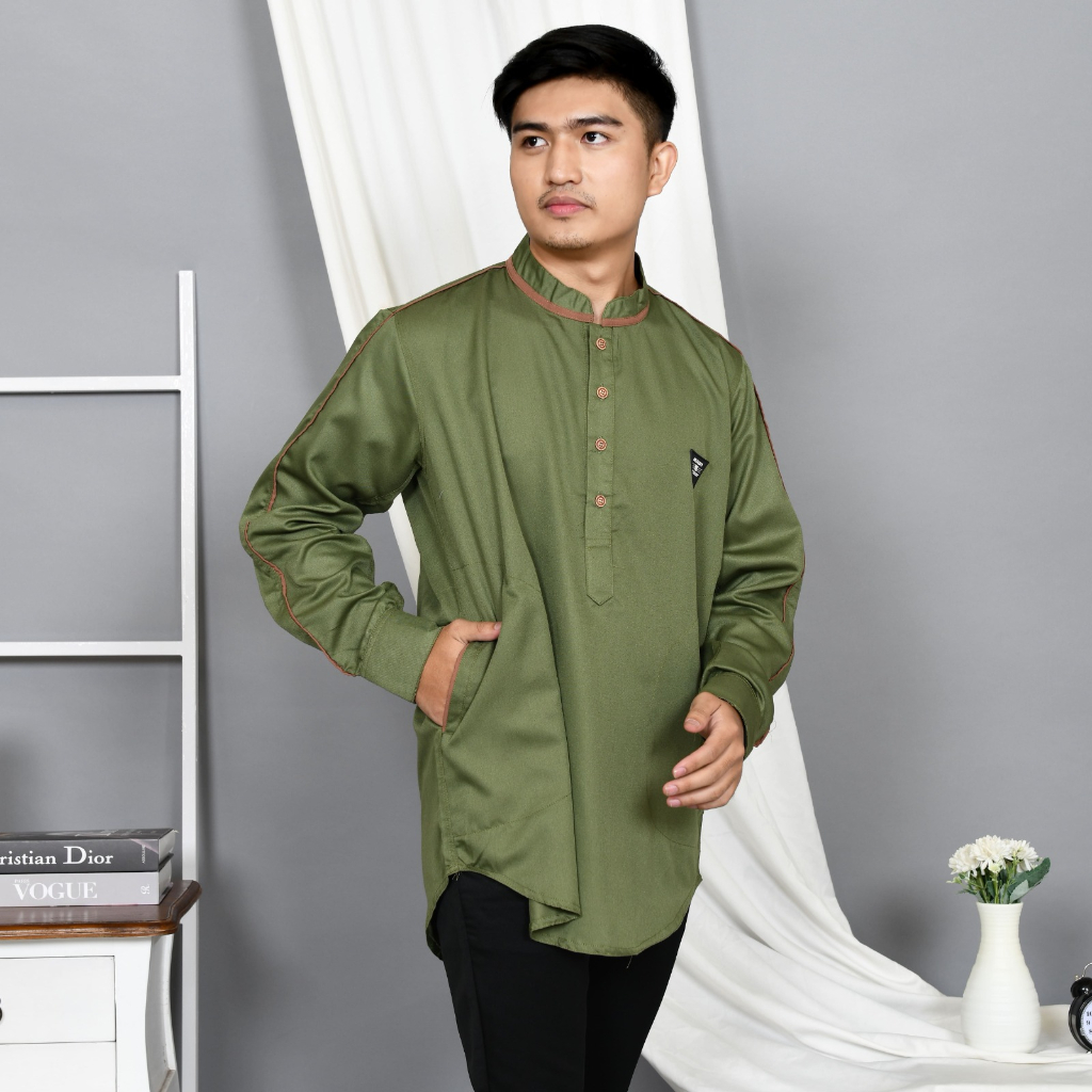 Baju Koko Atasan Muslim Pria Pakaian Model Kurta Pakistan Lengan Panjang Bahan Katun Toyobo KH2