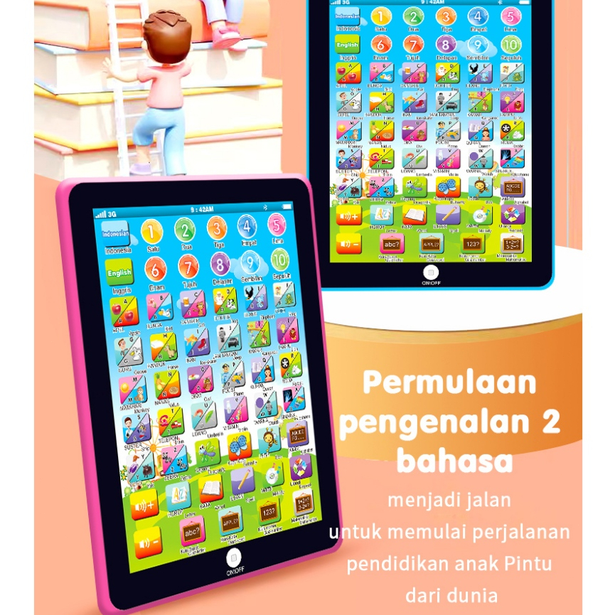 Habibi Mainan Tablet Anak Mini Edukasi Model iPad dengan Fitur Edukasi 2 Bahasa Inggris & Indonesia