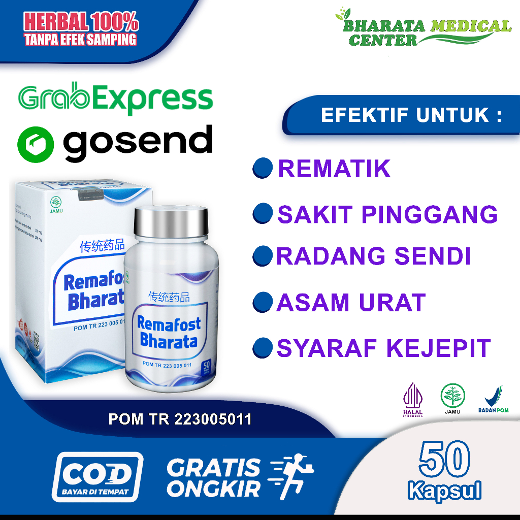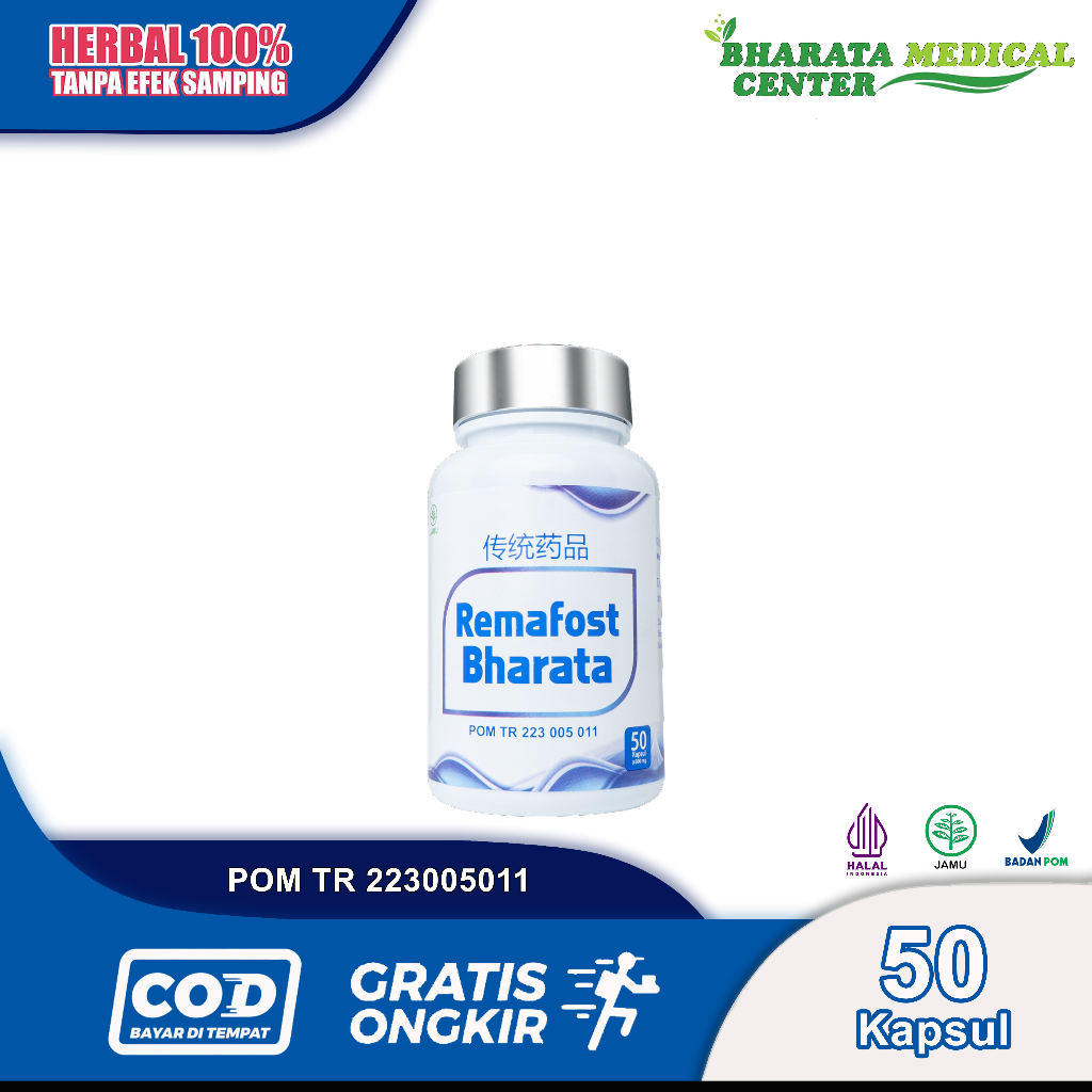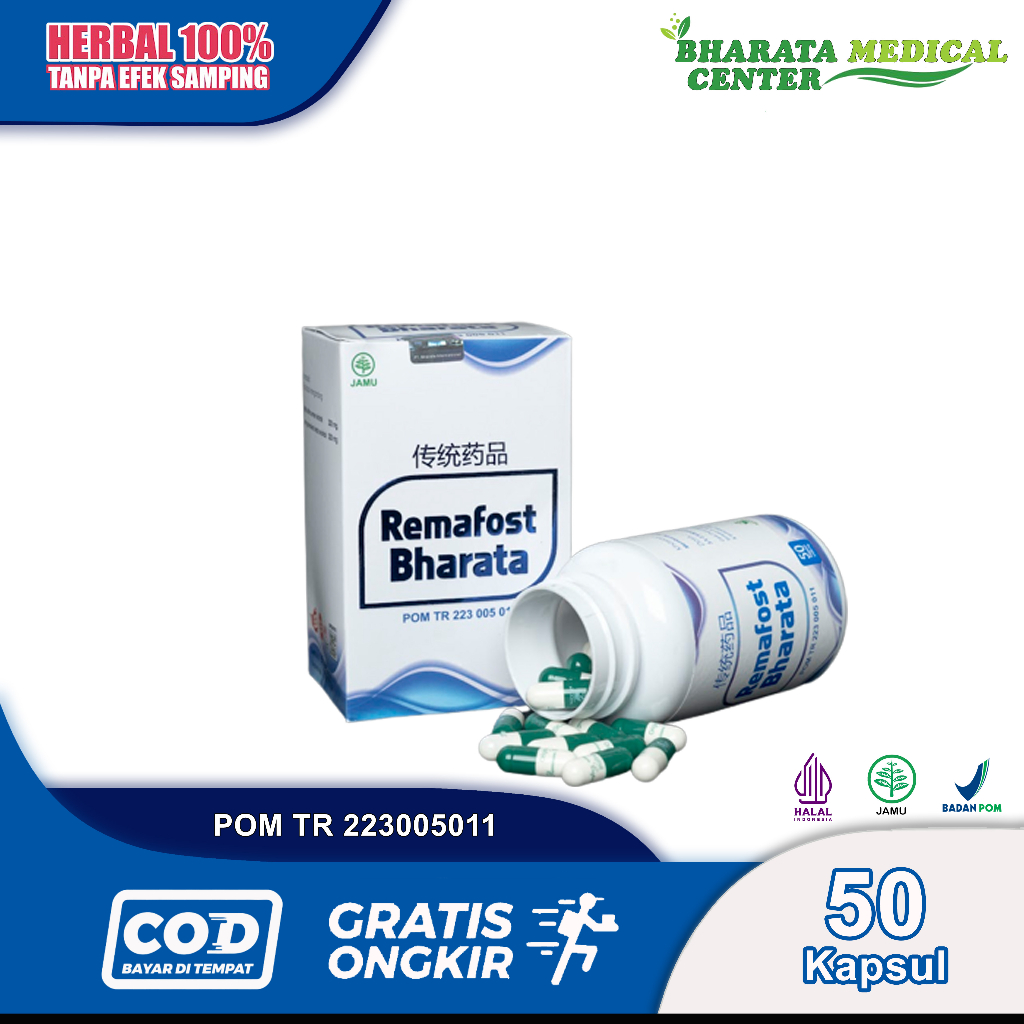 Remafost Bharata Obat Rematik Syaraf Kejepit Asam Urat Paling Ampuh Kemasan 500 gram Isi 50 Kapsul