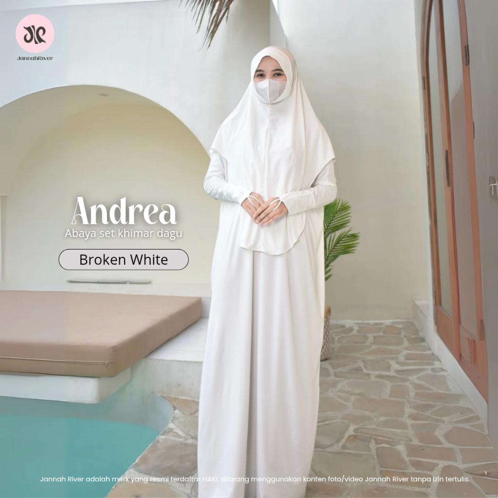 Jannah River Andrea Abaya Set Hijab Dagu Malay Batwing Gamis Lebaran Bahan Jersey Korea Premium Adem Syari Seragam Haji & Umroh