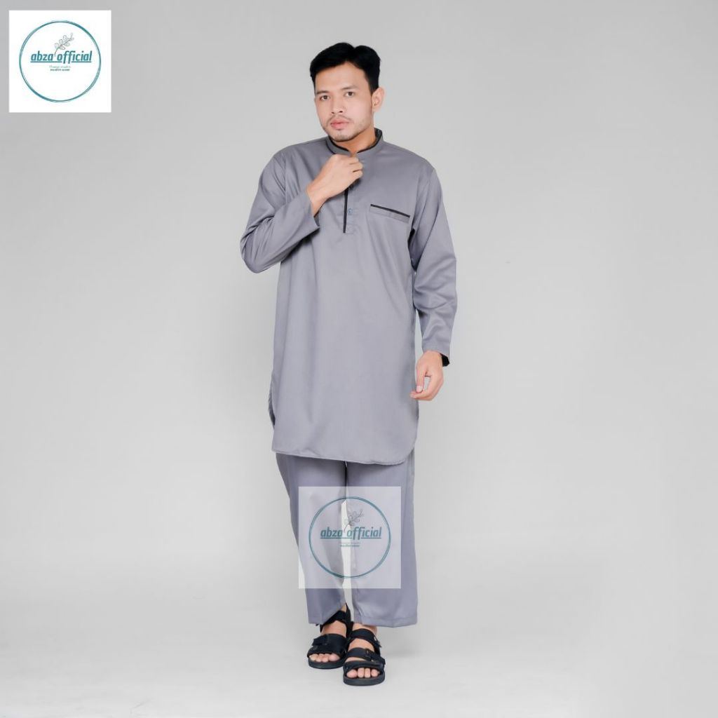 Baju Koko Pria Setelan Kurta Pakistan Dewasa Lengan Panjang Bahan Katun Toyobo Warna Abu Putih Navy Dan Hitam Model Terb