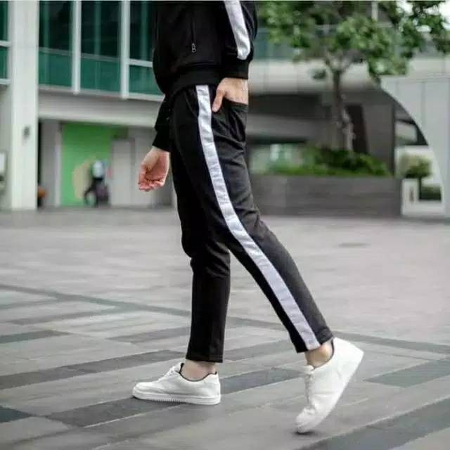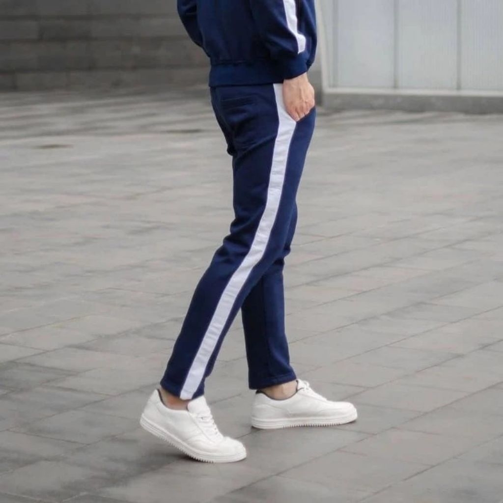 Celana Long Pants Trackpans Celana Sweatpants Jogger celana Training santai Warna Navy List Putih Be