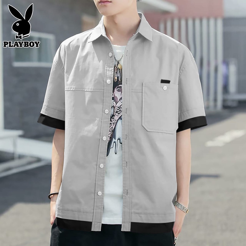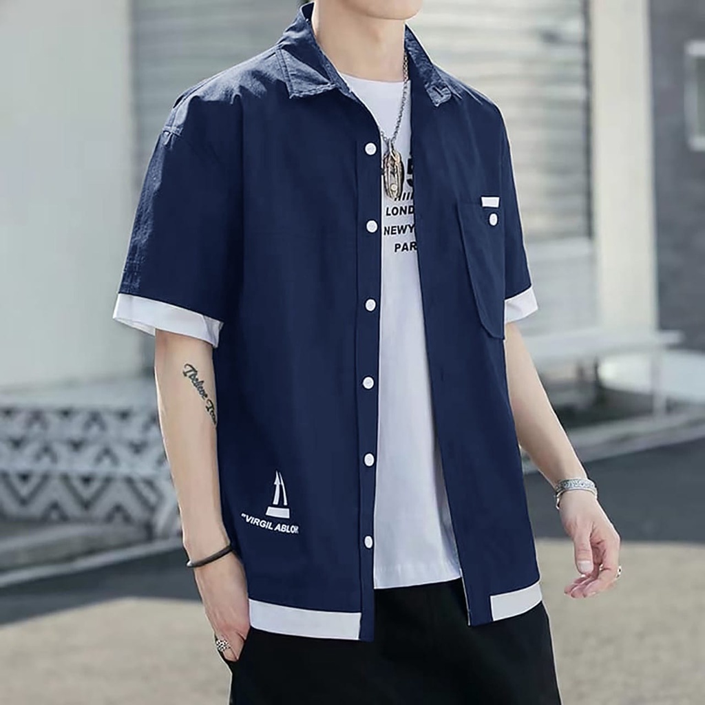 KIYOWO-Kemeja Pakaian Atasan Hem Kasual Jefry Lengan Pendek Pria