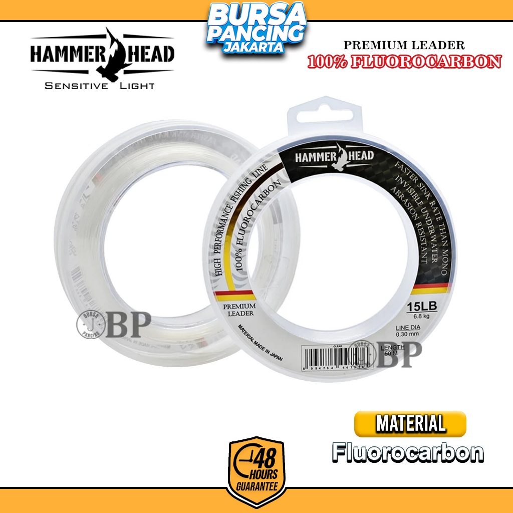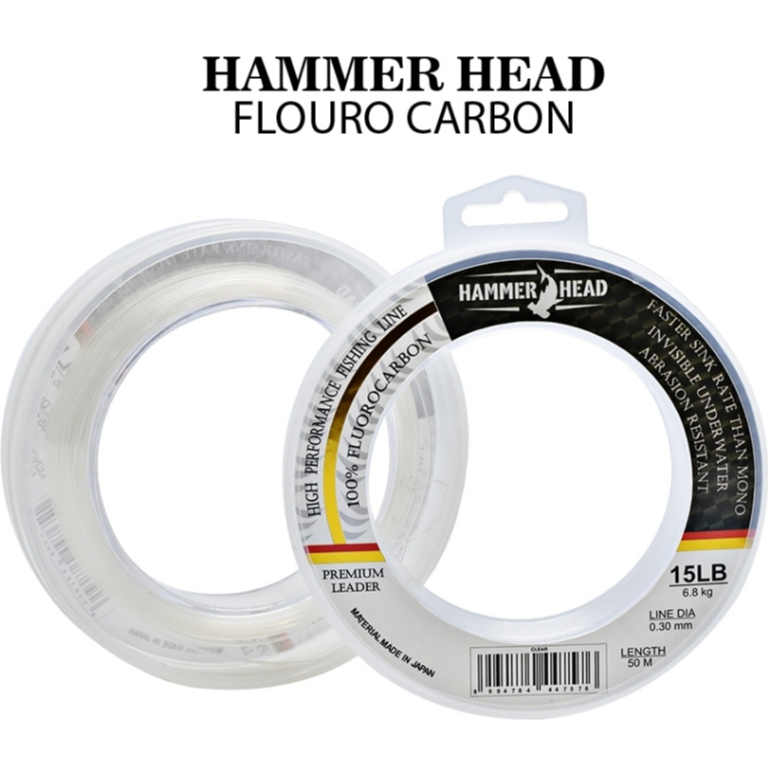 Senar Pancing Leader Hammer Head Fluoro Carbon 50M Transparant Fast Sinking Invisible Underwater