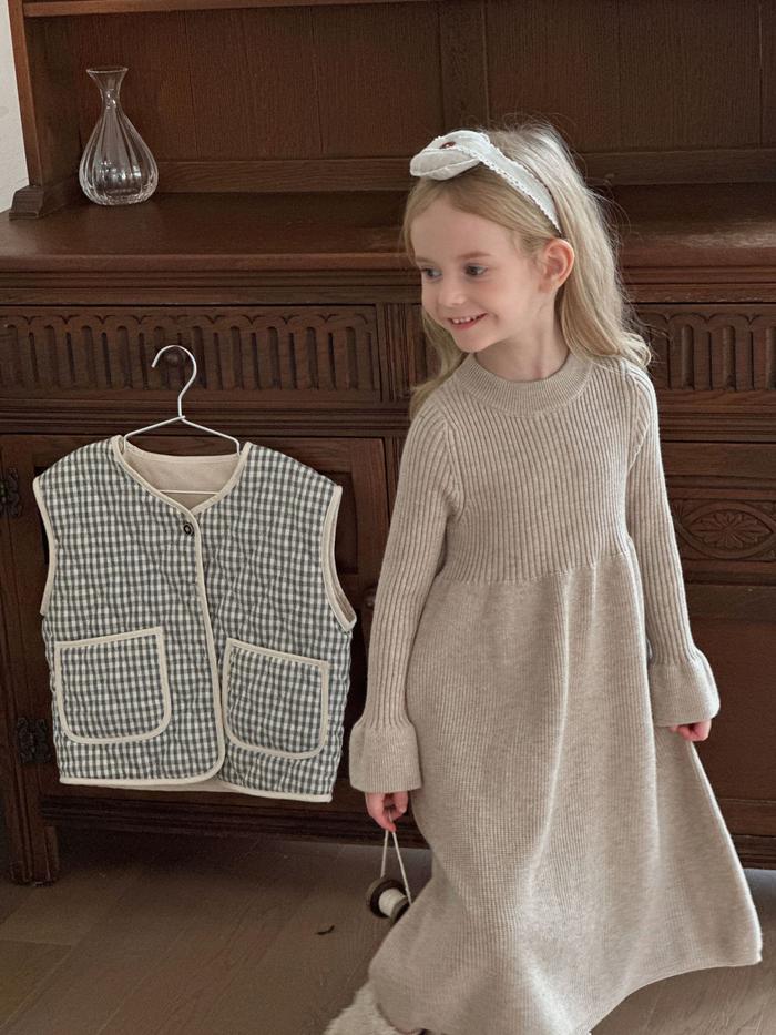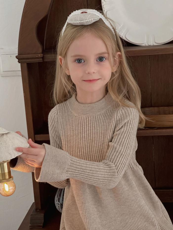 Babydoraa Ds-229 Dress Knitted Anak Perempuan Kualitas Top Untuk Usia 1-8 Tahun - Fashion - Cream, 90(1-2Thn)