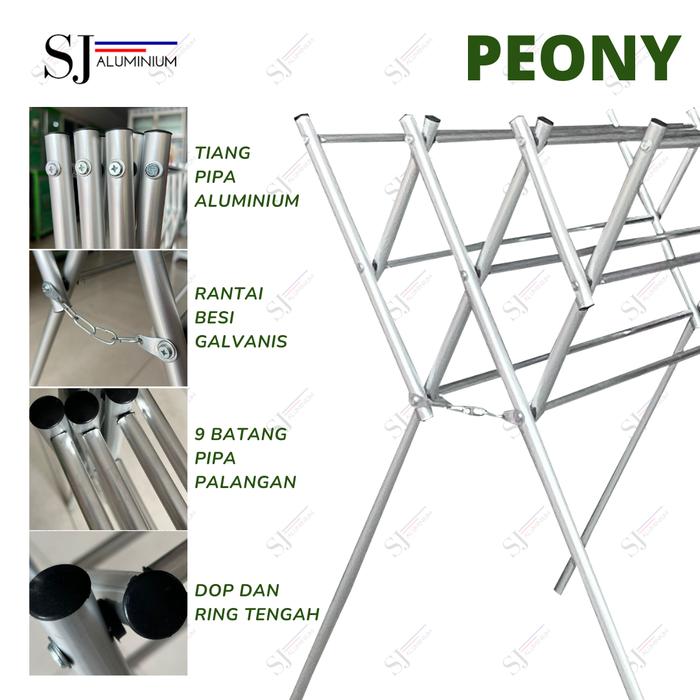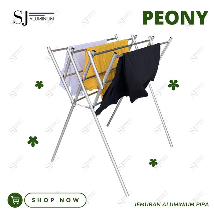 Peony - Rak Handuk / Jemuran Baju & Pakaian Lipat Pipa Aluminium - Ukuran 81 Cm