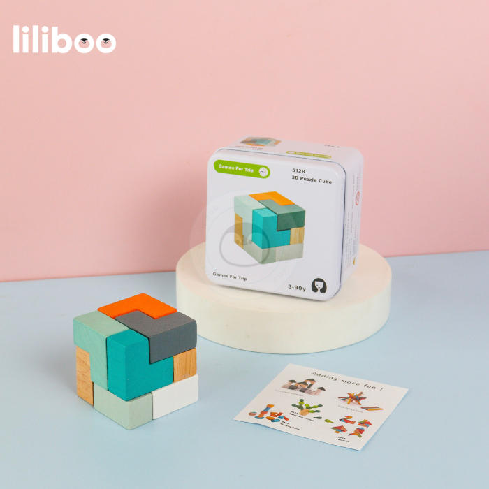 LILIBOO MARU Mainan Edukasi Anak Montessori Kayu Puzzle 3D Tetris Cube