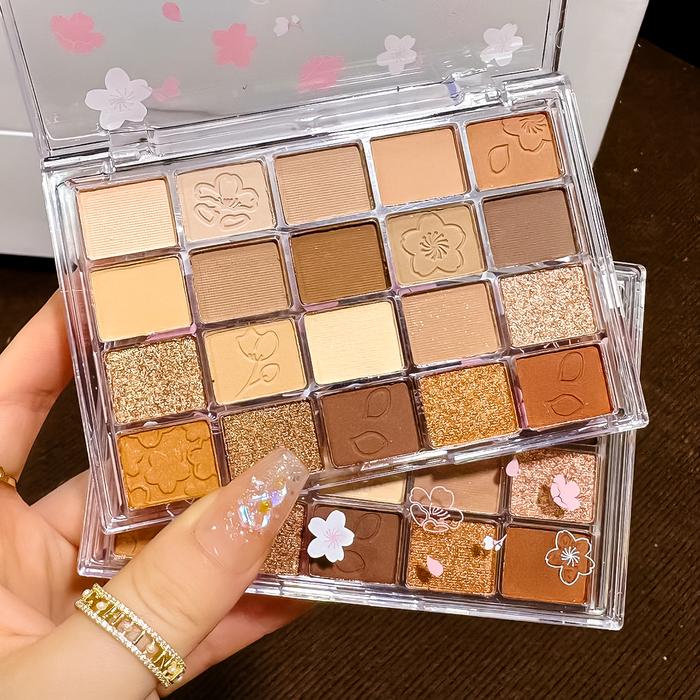Bundling Eye Set Makeup Eyeshadow Cherry Blossoms 20 Color Plus Brush Makeup Multifungsi - Eyeshadow + 5 Brush