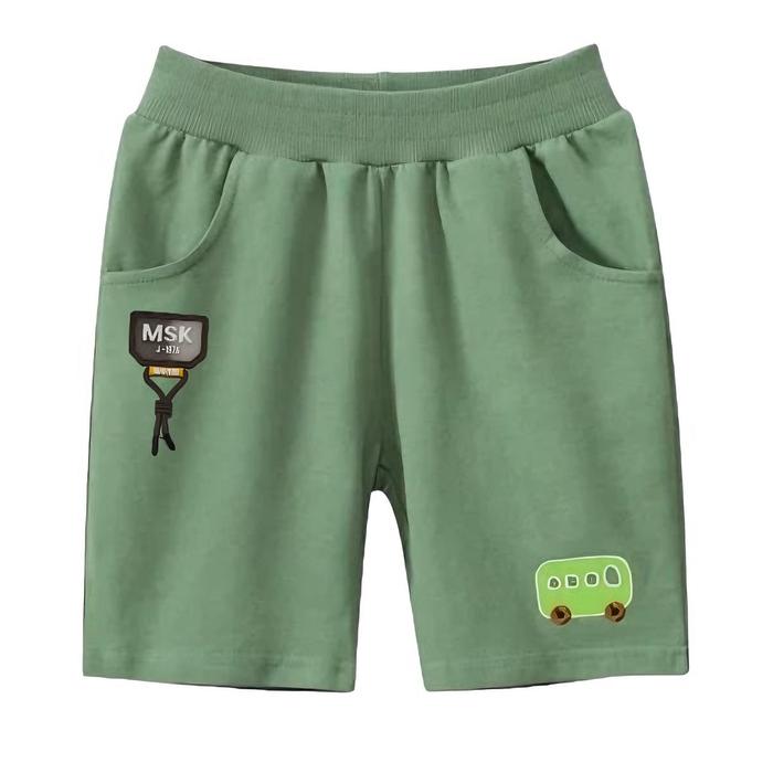 Masyken Trans- Celana Pendek Anak Laki - Usia 1-13 Tahun Bahan Babytery Premium - Hijau Sage Bus, S
