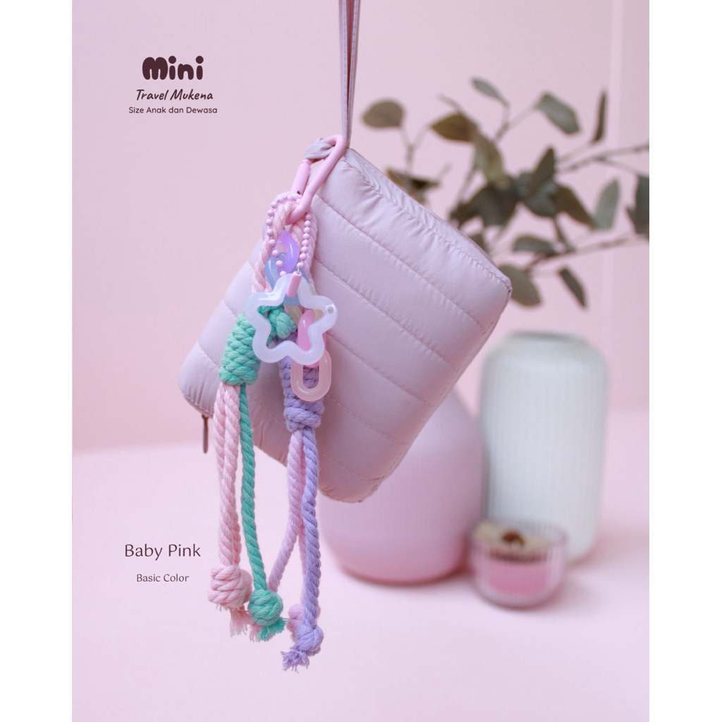 Mukena Traveling Mini Pouch Premium Basic Colour (2in1 Resleting Dagu) Anak dan Dewasa dengan Sajadah Muka Korea Soft Free Gantungan Tas Cantik