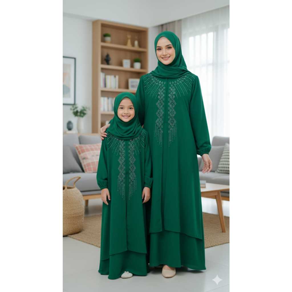 SYAHARA DRES - GAMIS DOUBLE LAYER - BISA COUPLE IBU ANAK - BAHAN Cruti PREMIUM - 3-12 TAHUN