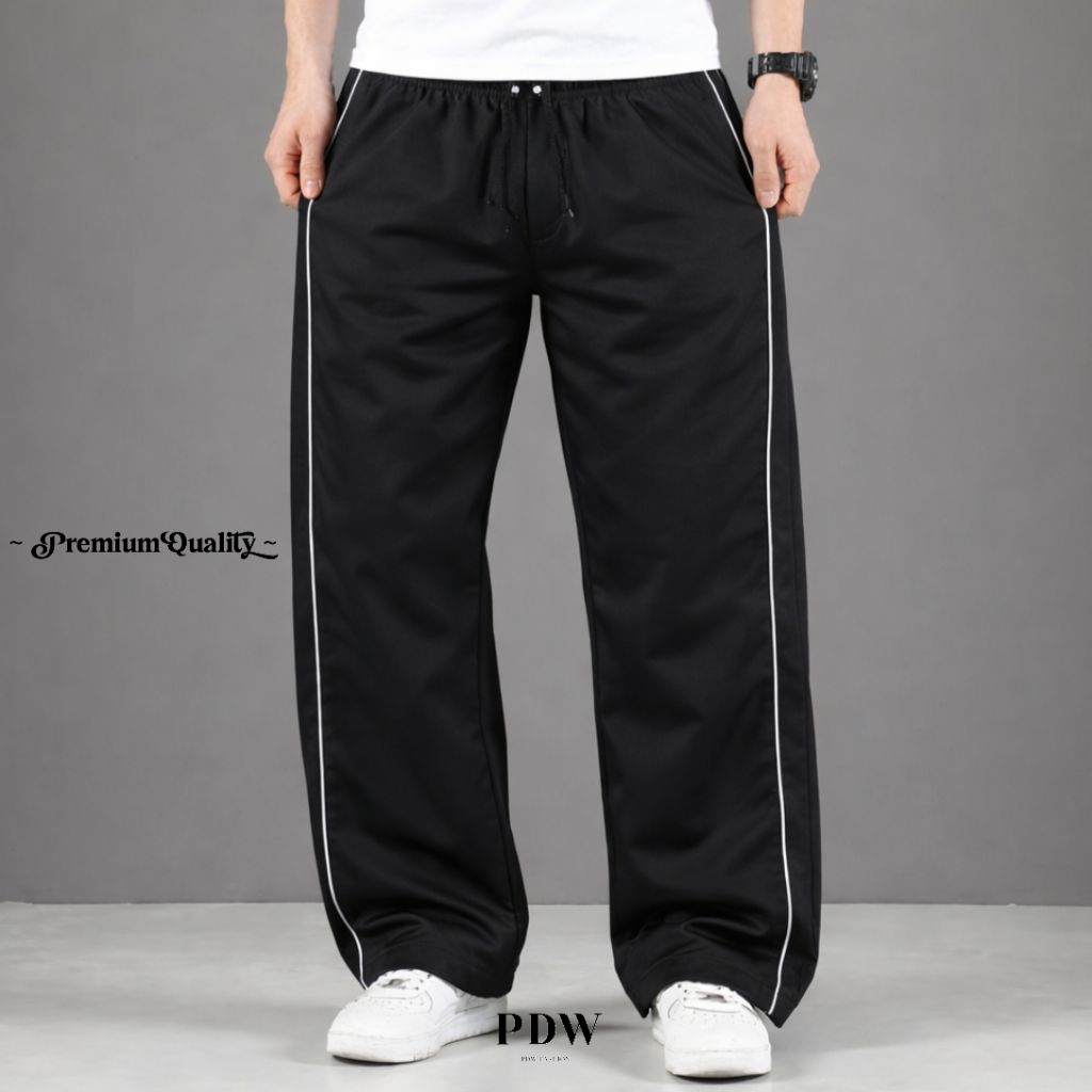 Celana Training Olahraga Panjang Pria Wanita Hitam Baggy Trackpants Sport Casual Dewasa Celana Panjang List Dua Saku Res