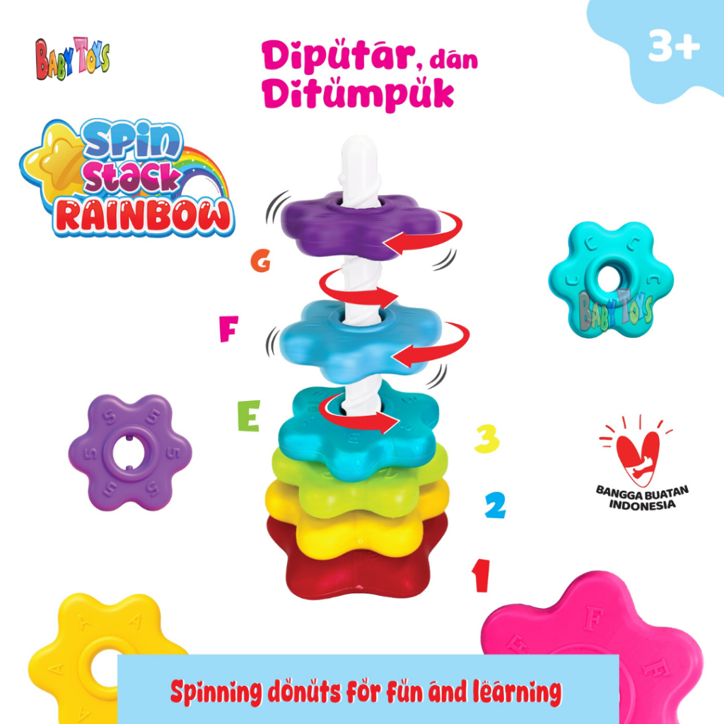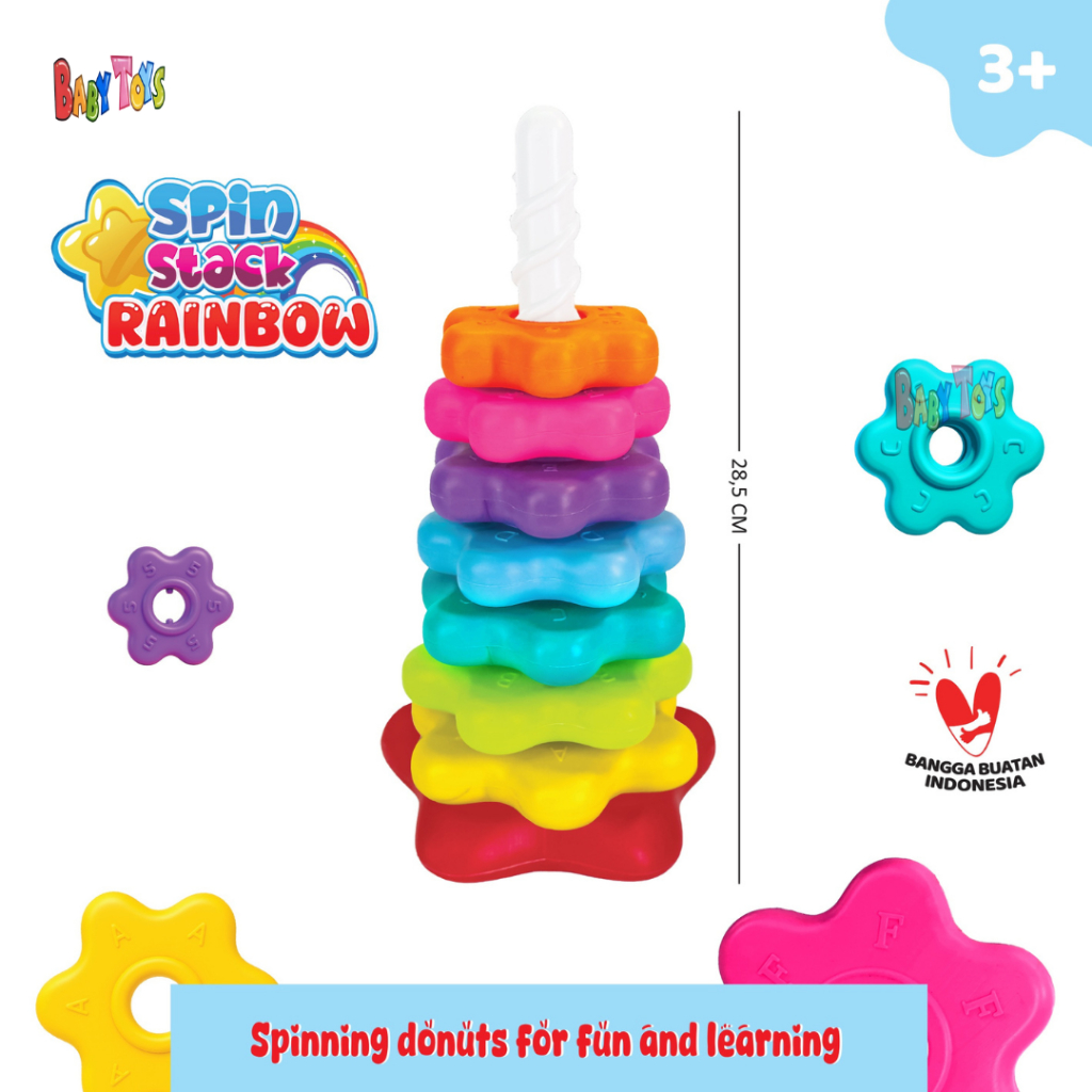 BabyToys Mainan Ring Donat Susun Putar Anak Bayi Jumbo Edukasi Rainbow Tower Spinner Stack Edukatif