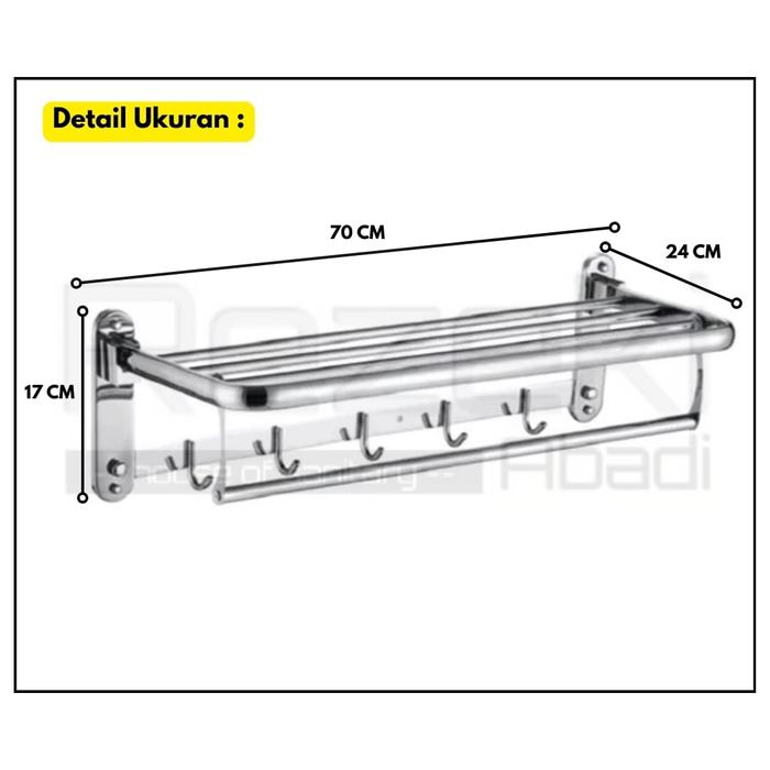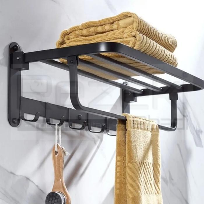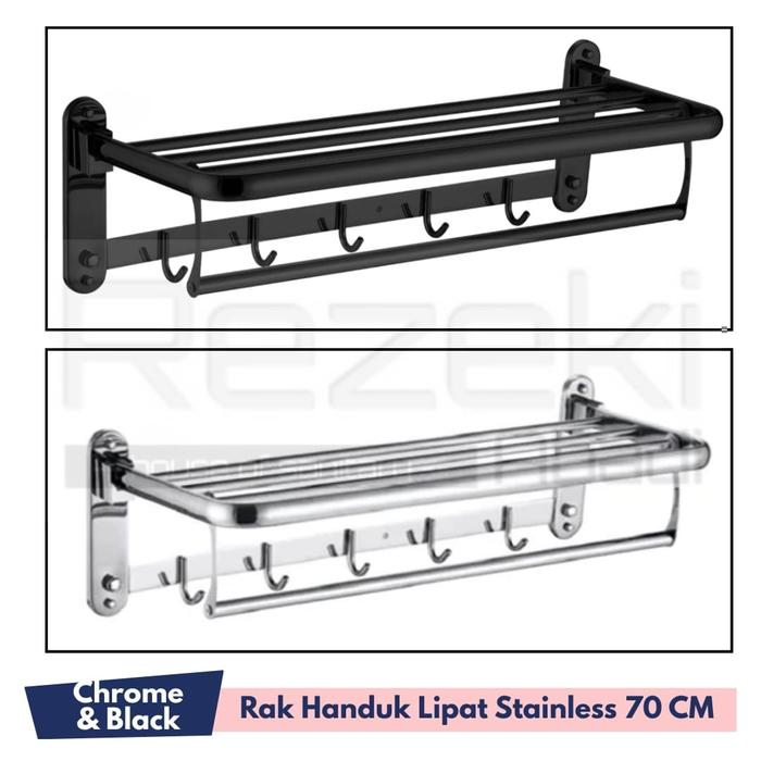 Rak Handuk Lipat Stainless 70 Cm - Gantungan Handuk Kamar Mandi Hitam Doff - Eixo-Chrome